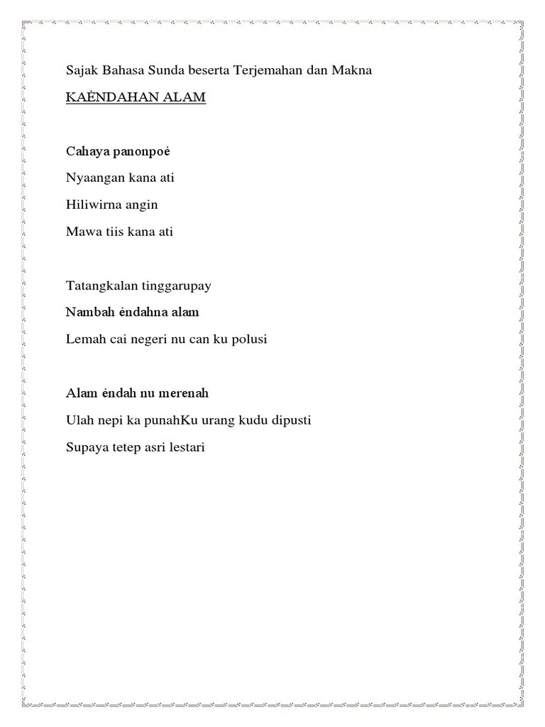 Sajak Sunda Tentang Kaendahan Alam - Yg Pinter Bahasa Sunda Klik Dong Bantuin Brainly Co Id - "endahe alam" yen mandheng alam iki.. Puji syukur matur nang gusti allah marang kaendahan isine ing bumi sing kudu dijaga lestariane "endahe alam" yen mandheng alam iki. Pikiran susah dadi endah anggugah semangat urip kangge jiwa iki ati pun dadi sumringah lan bungah.